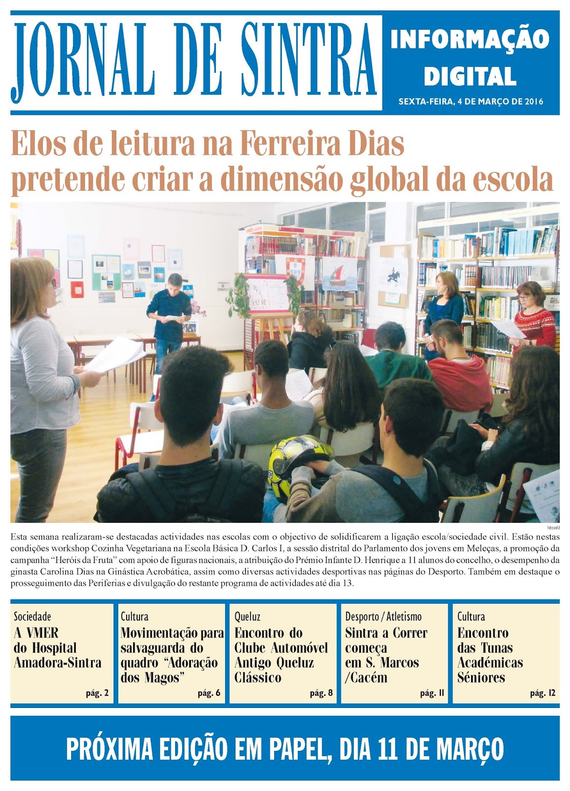A última edição do Jornal de Sintra, disponível apenas em formato digital, destaca que a iniciativa "Elos de leitura na Ferreira Dias pretende criar a dimensão global da escola". [edição em PDF]