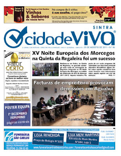 Já saiu a edição de Julho do jornal Cidade VIVA. Os destaques são uma entrevista ao empresário Joaquim Neto Filipe e o estudo apresentado recentemente pela empresa Parques de Sintra - Monte da Lua. [edição em PDF]